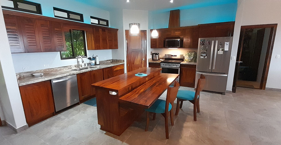 This incredible home also comes with an array of additional amenities, features and furnishings to ensure ultimate comfort and peace of mind including a new 55" LG 4k TV, a 42" Samsung TV, fiber optic internet, teak wood ceilings and Guanacaste wood beams in the great room and bedrooms, and two instant hot water heaters. Enjoy the famous Aguacate spring water with filtration system (Aguacate water is regarded as the best water in Costa Rica), a one-meter tiled walkway around the entire exterior of home, pex plumbing with Delta fixtures, and high ventilation windows throughout the house to insure excellent air flow. Ceiling fans are located in the bedrooms, living room, porch, and master bath. Security lighting illuminates the entire perimeter of house, and three modern Wi-Fi security cameras can be placed anywhere you like.